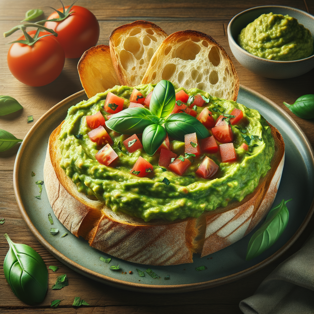 Crispy Italian bread topped with a creamy guacamole blend, diced tomatoes, and fresh basil. A fusion of Italian and Mexican flavors.