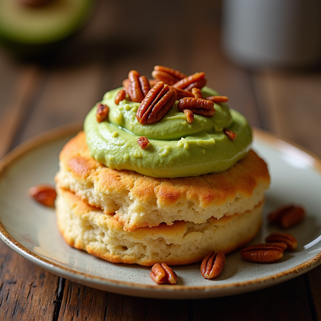 Bojangles' biscuits soaked in a rich custard with avocado, cinnamon, and vanilla. Topped with a swirl of guacamole and candied pecans for a sweet and savory treat.