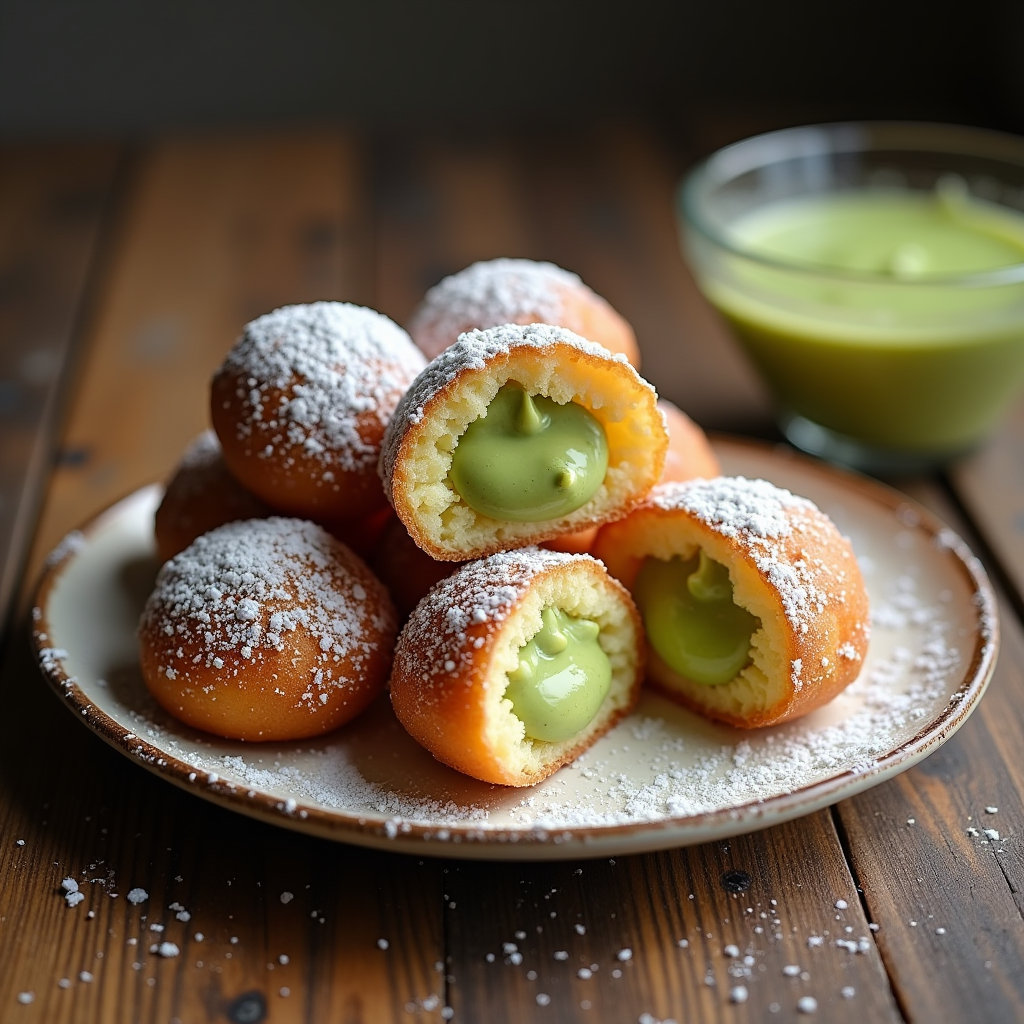 Warm, fluffy beignets dusted with powdered sugar and filled with a sweet avocado cream. A surprising twist with a creamy, cool filling and a light, airy texture.