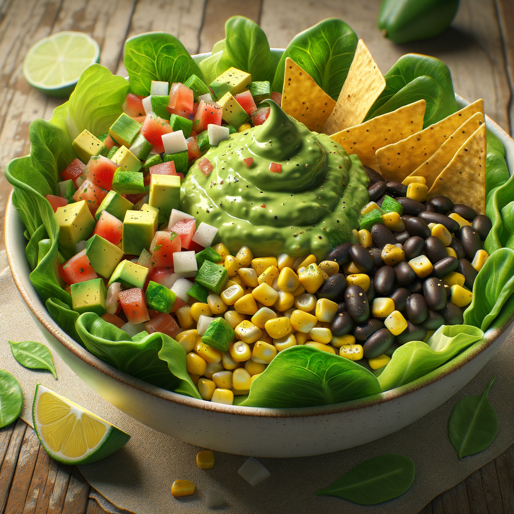 A refreshing mix of crisp romaine lettuce, sweet corn, black beans, pico de gallo, and crunchy tortilla strips, all tossed in a zesty avocado lime dressing.