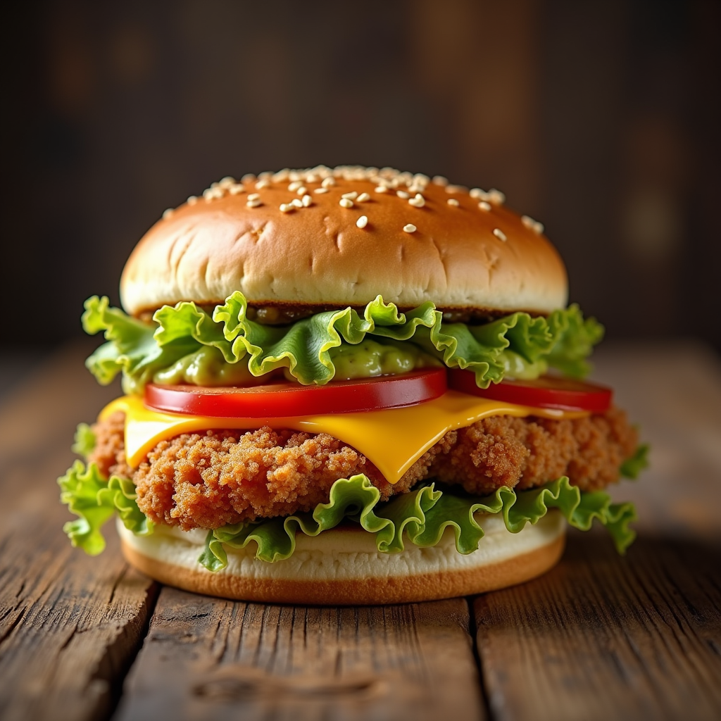 A classic Chick-fil-A chicken sandwich taken to the next level. It has crispy fried chicken, fresh lettuce, tomato, pepper jack cheese and a spread of creamy, tangy guacamole.