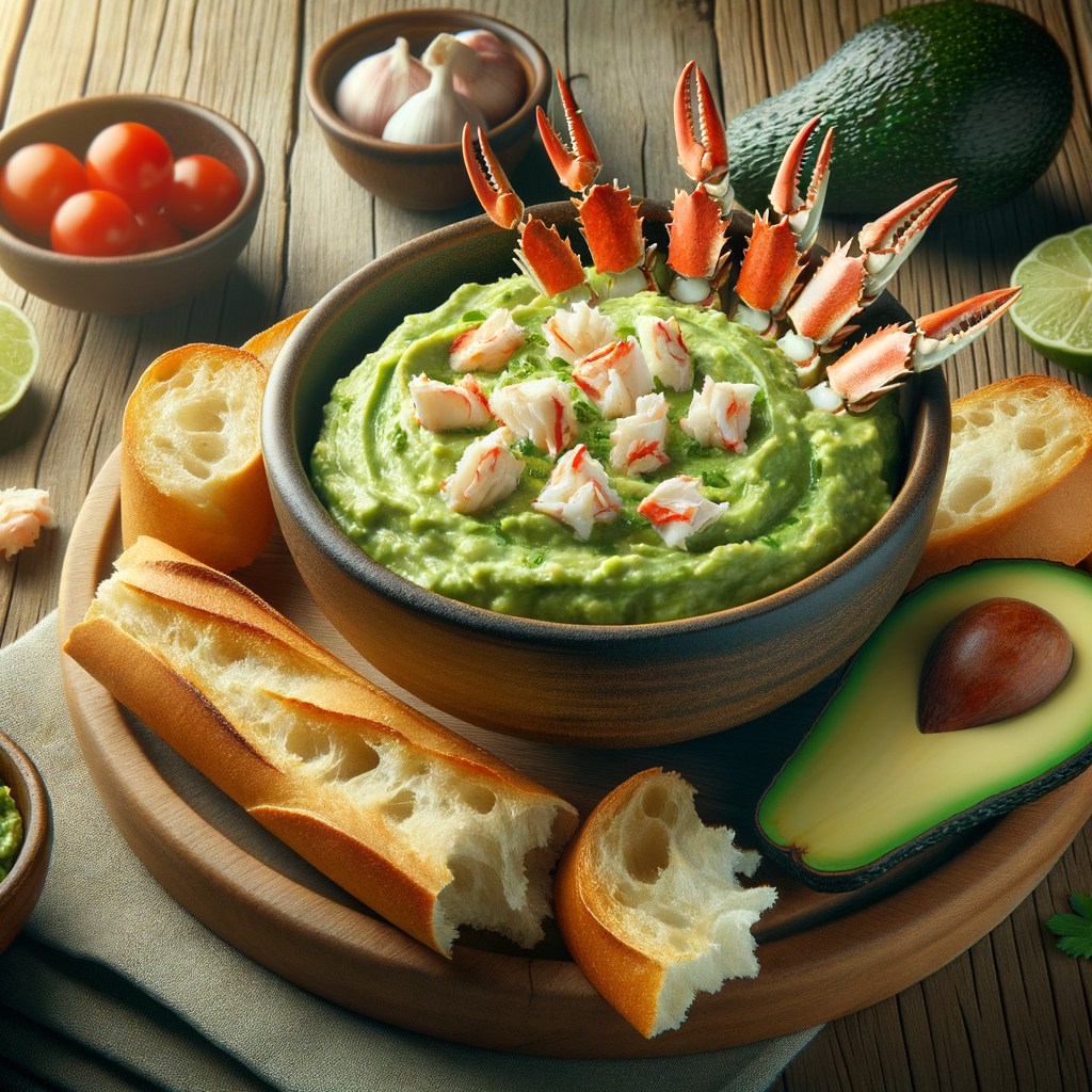 A harmonious blend of Chickie's & Pete's creamy avocado dip with chunks of tender crab meat, served with a side of warm, toasted baguette slices for the perfect dipping experience.