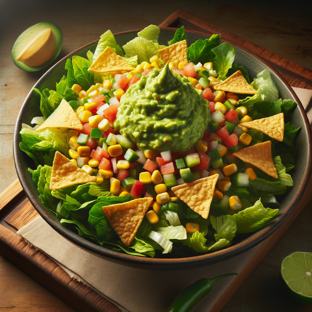 A fresh mix of chopped romaine lettuce, sweet corn salsa, and a hearty scoop of guacamole, tossed in a zesty chipotle-honey vinaigrette. This salad is topped with crunchy tortilla strips for a satisfying texture contrast.