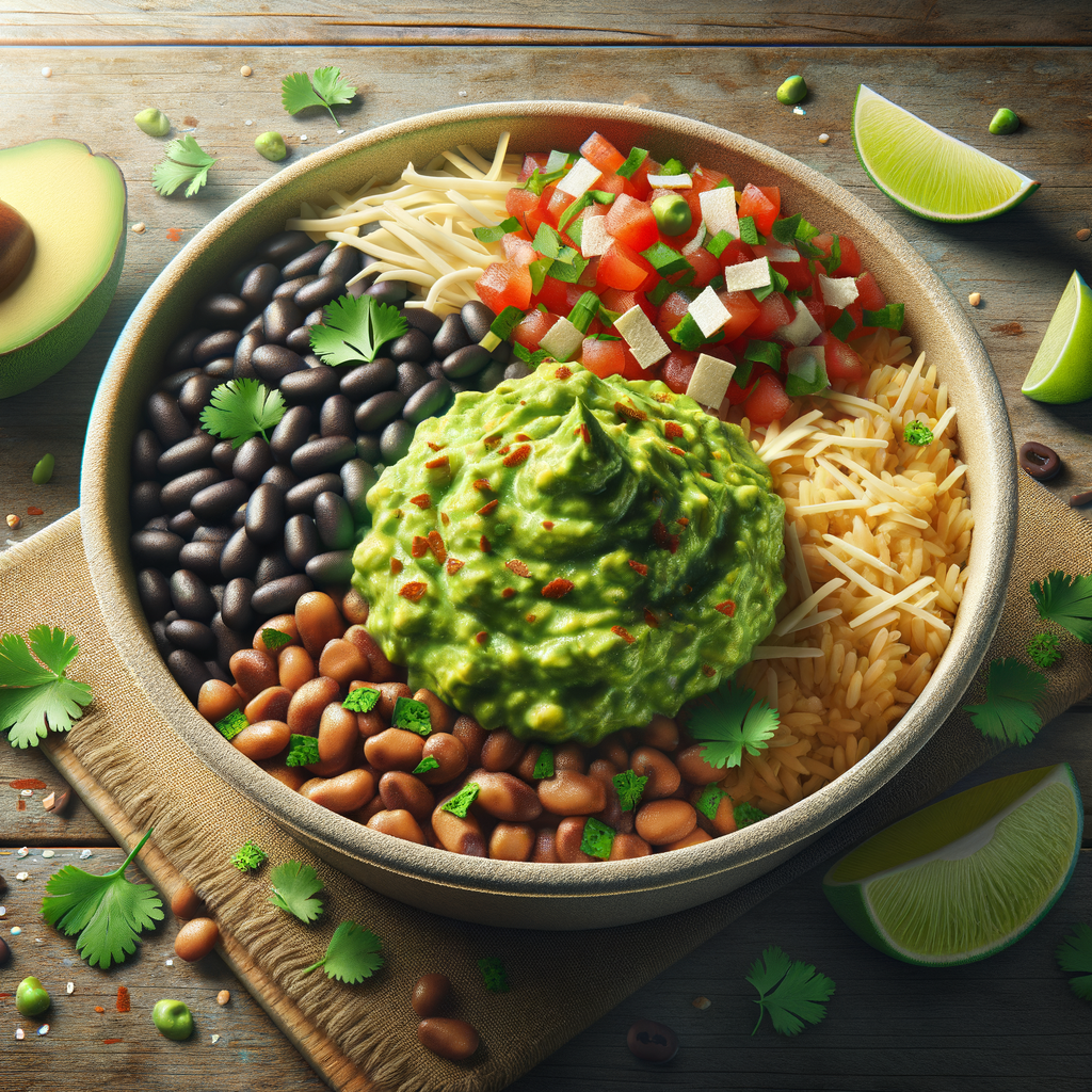 A deconstructed take on the classic burrito, this bowl features cilantro-lime rice, black beans, and your choice of protein topped with a generous dollop of zesty guacamole, pico de gallo, and a sprinkle of shredded cheese. A fusion of flavors that's both hearty and refreshing.