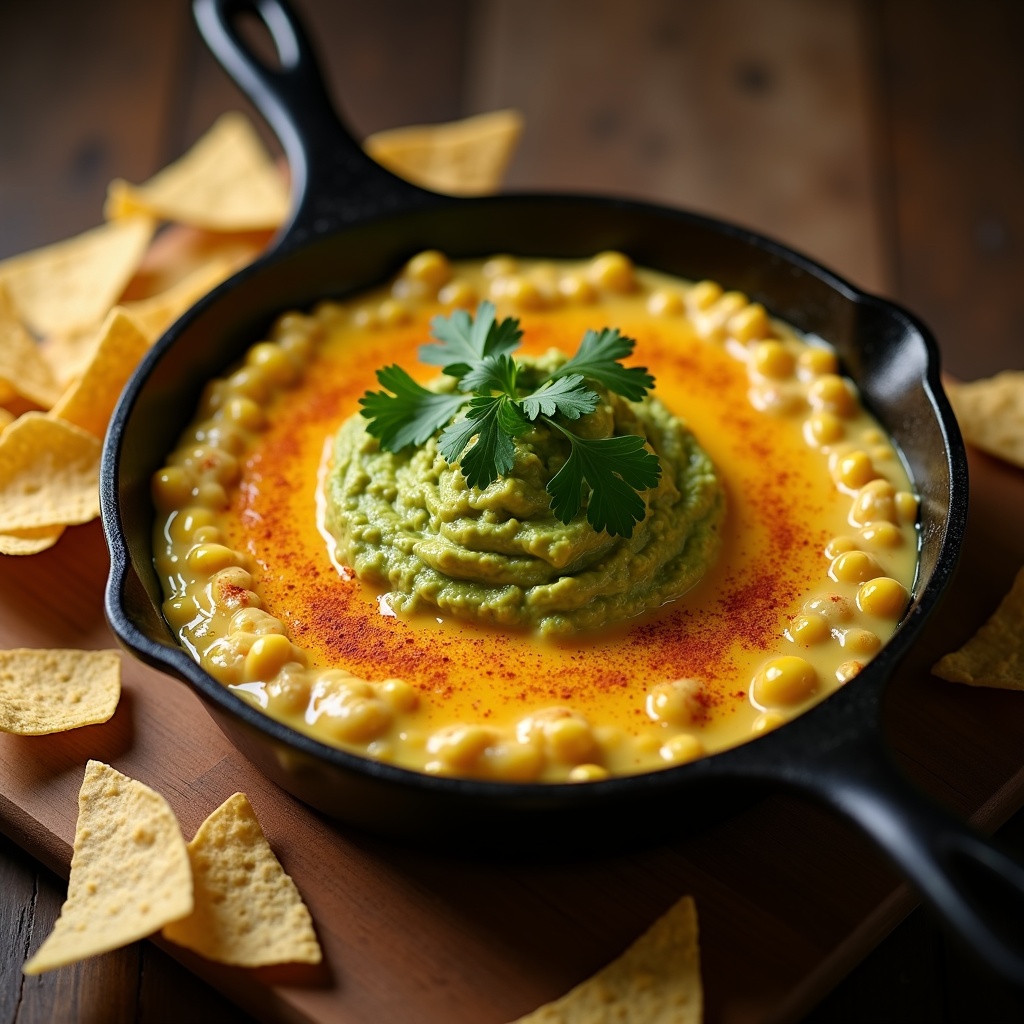 Warm, smoky grilled corn blended with cotija cheese and a generous layer of Guacamole. Served with crispy tortilla chips for scooping, topped with chili powder and cilantro.