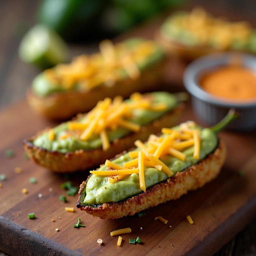 Crispy jalapeño halves filled with creamy Mash Guac, melted Monterey Jack, and a hint of lime. Served with a side of smoky chipotle crema for dipping, balancing heat and cool.