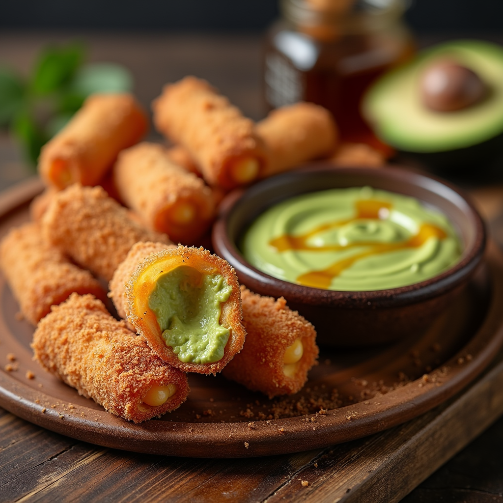 Crispy, bite-sized churros filled with a sweet guacamole cream cheese filling, dusted with cinnamon sugar, and drizzled with honey. Unexpected, yet delicious.