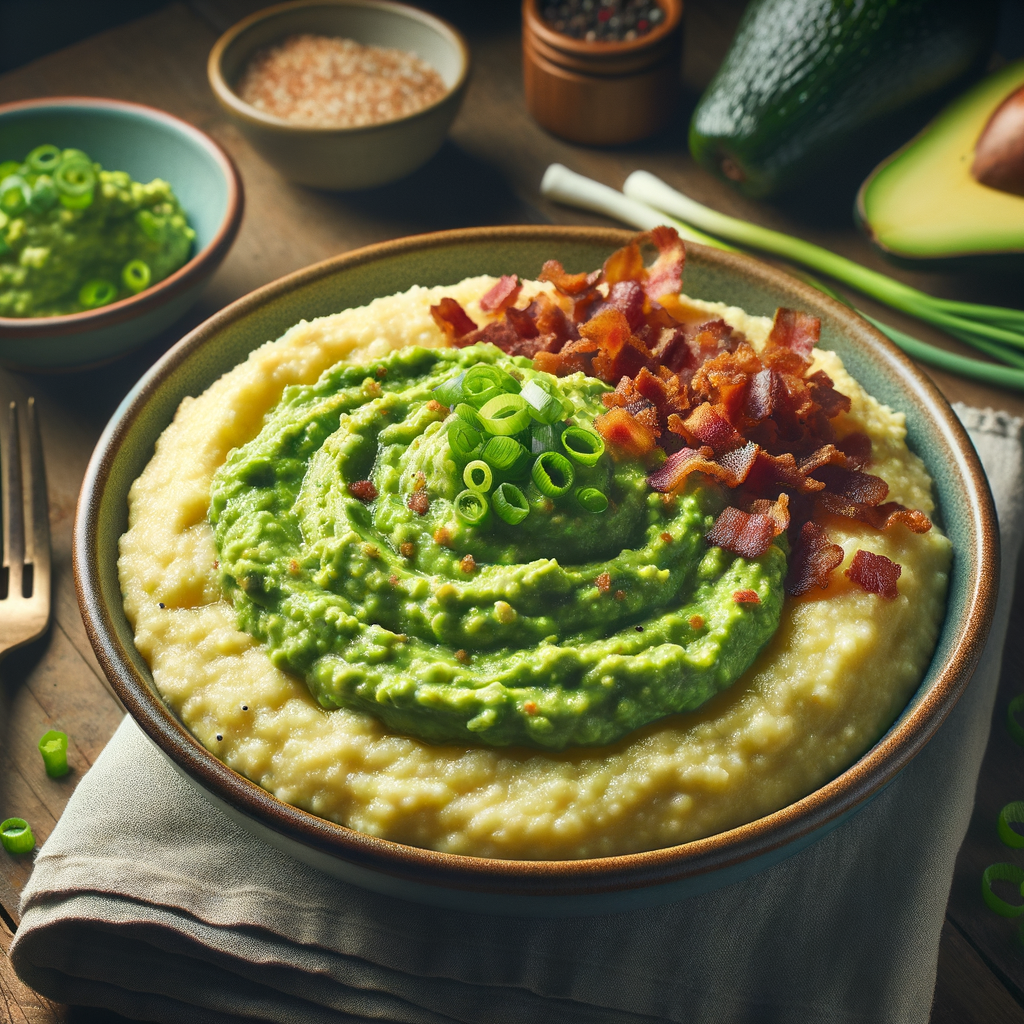 Creamy mashed avocado served over traditional Southern grits, topped with crispy bacon bits and a sprinkle of green onions. A Southern twist on a classic breakfast staple.