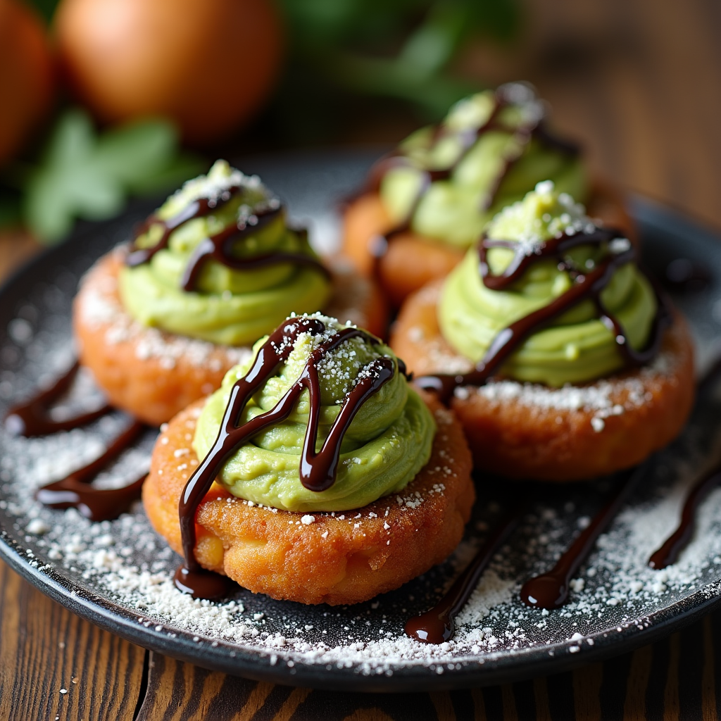 Deep-fried Oreos topped with a scoop of sweet cream cheese guacamole. Drizzled with chocolate syrup and sprinkled with powdered sugar. Sweet, decadent, and surprisingly refreshing.