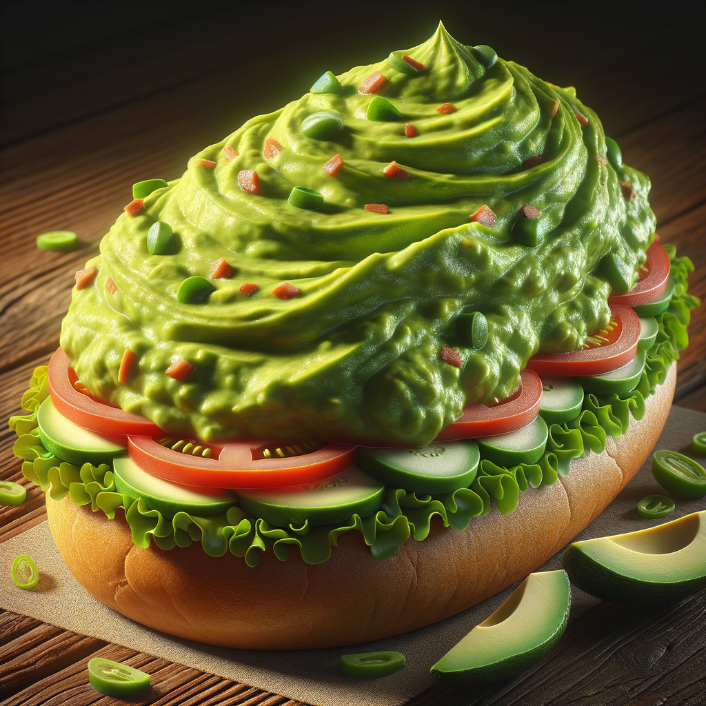 A twist on a classic, this sub features freshly baked bread filled with layers of garden-fresh lettuce, tomatoes, cucumbers, and sweet peppers, topped with a generous spread of homemade guacamole for a creamy and indulgent touch.