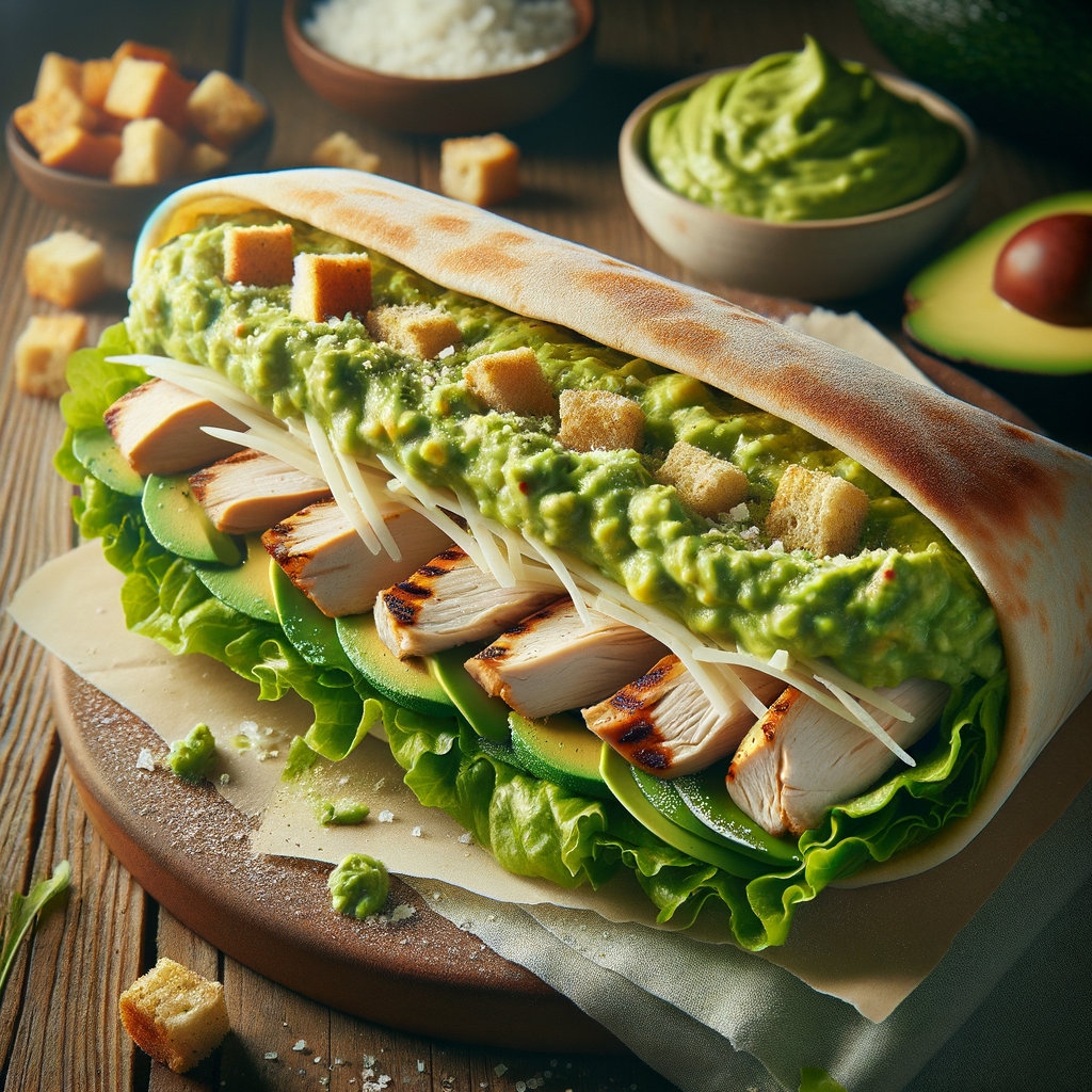 A hearty submarine sandwich wrap filled with grilled chicken, romaine lettuce, parmesan cheese, and croutons, all tossed in a rich avocado Caesar dressing. This creamy and satisfying wrap brings a new avocado-infused flavor to the Jet's menu.