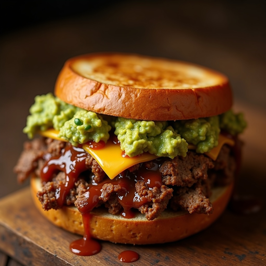 Thick slices of classic meatloaf on toasted sourdough, smothered in chunky guacamole, melted cheddar, and tangy barbecue sauce. A rich, creamy twist on a Southern staple with bold flavors.
