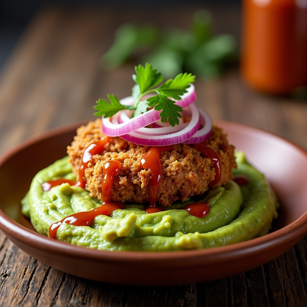 Crispy, bite-sized chicken fried steak served atop a bed of creamy guacamole. A spicy chipotle drizzle adds zesty heat. Garnished with cilantro and pickled onions.