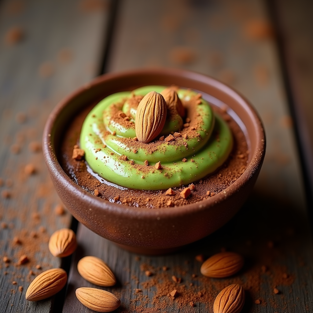 A surprisingly rich and decadent chocolate mousse made with creamy avocado. Sweetened with agave and subtly spiced with cinnamon, topped with toasted almonds and cocoa powder.