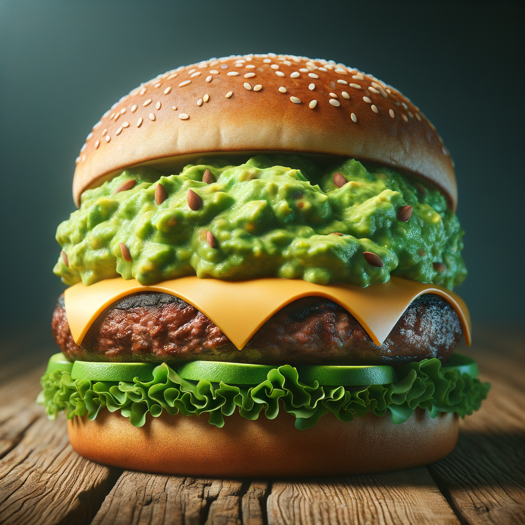 A succulent beef patty topped with a generous dollop of zesty guacamole, melted cheddar cheese, and crisp lettuce, all sandwiched between our classic toasted sesame seed bun.