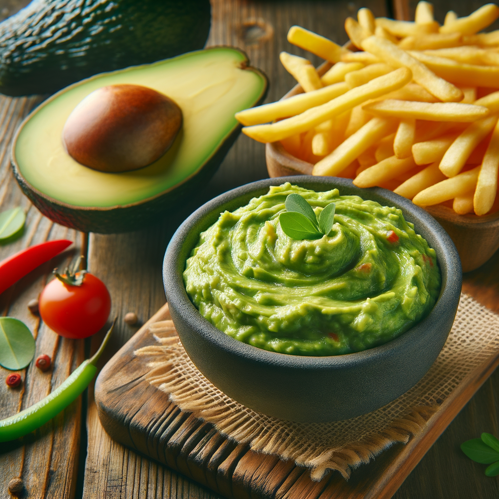 Our famous French fries served with a side of smooth avocado dip for dunking, adding a creamy twist to a beloved classic.