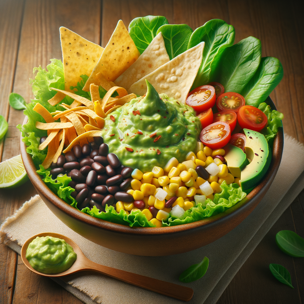 A refreshing mix of crisp romaine lettuce, sweet corn, black beans, cherry tomatoes, and crunchy tortilla strips, all tossed with a homemade avocado dressing and topped with a sprinkle of queso fresco.