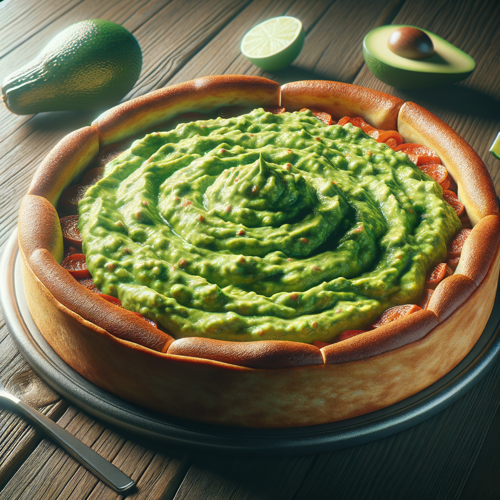 A Chicago-style deep-dish pizza with a twist—after baking to golden perfection, it's finished with a generous layer of smooth guacamole on top, combining the heartiness of deep-dish with the cool, creamy texture of avocado.