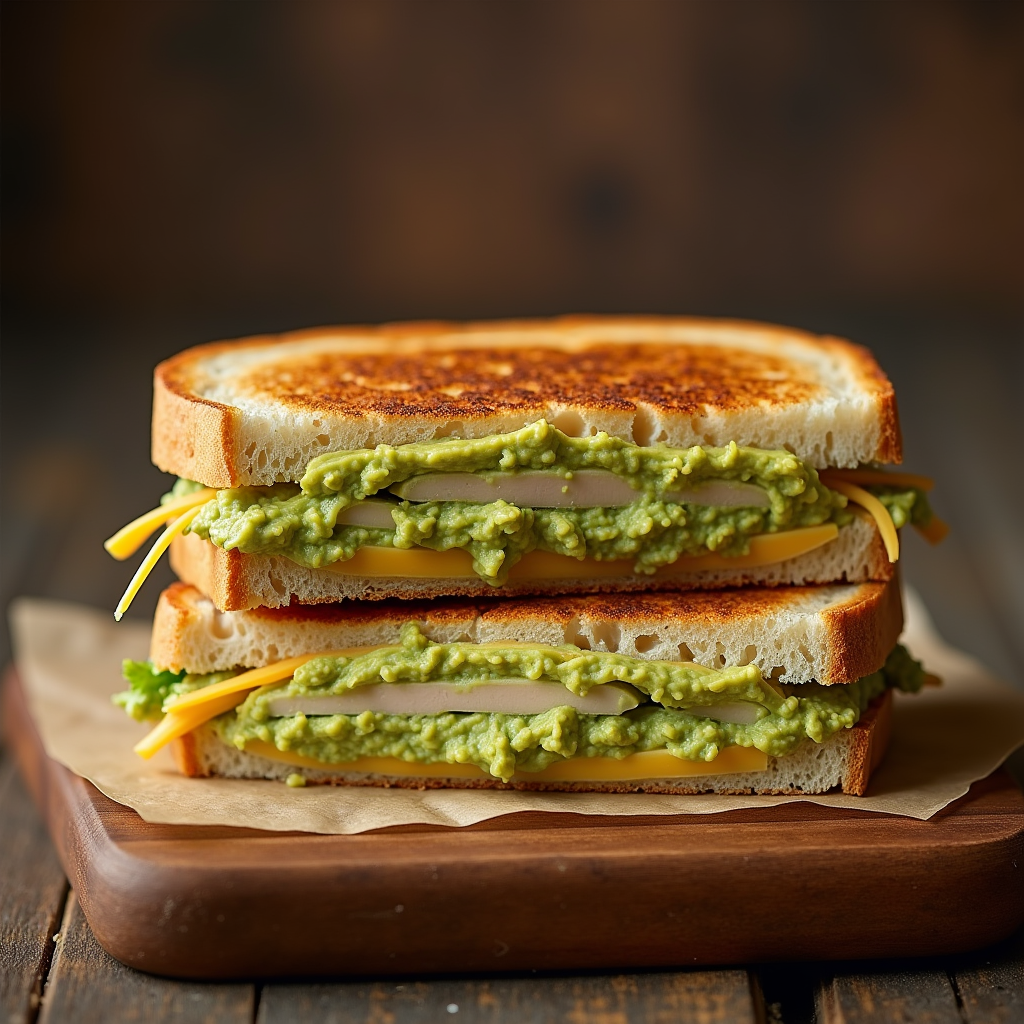 Smoked turkey breast, sharp cheddar, and a generous spread of mashed guac are grilled between slices of Panera's signature bread, creating a warm, savory, and satisfying panini.