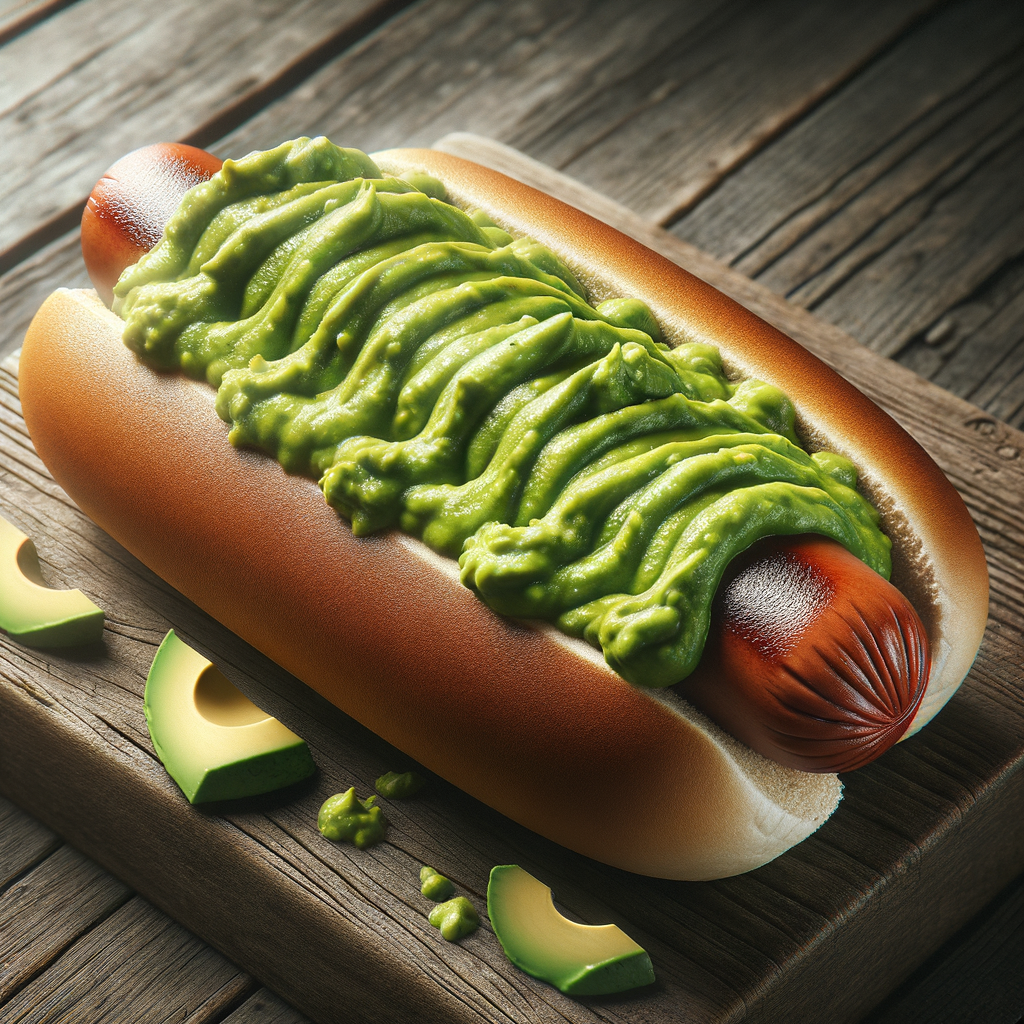 A flat-top grilled Vienna beef hot dog topped with a rich avocado dip, diced onions, and a sprinkle of smoked paprika. Served in a soft, warm bun, it's a delicious twist on the classic dog that avocado lovers will relish.