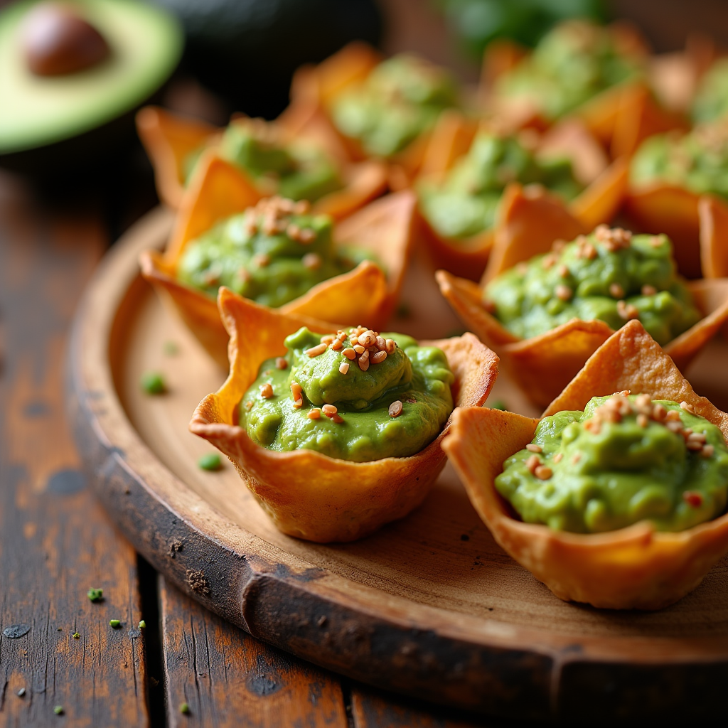Crispy wonton cups filled with spicy mango guacamole. Topped with a drizzle of sweet chili sauce and toasted sesame seeds for a sweet-heat explosion in every bite.