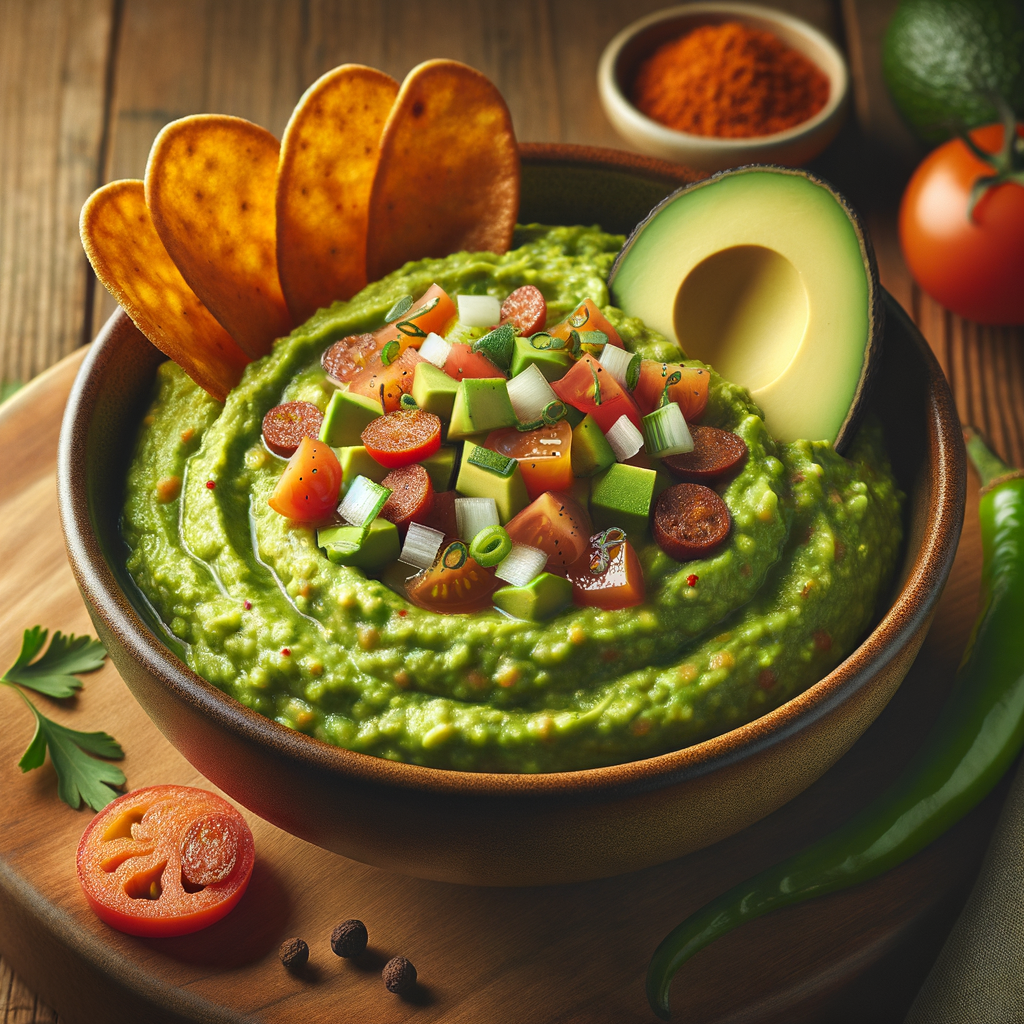 A rich blend of creamy mashed avocado, fresh diced tomatoes, onions, and a hint of Cajun spices, served with crispy andouille sausage chips for a Southern twist.